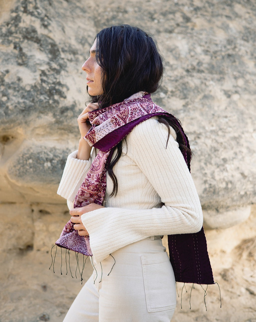 The Skinny Kantha Scarf in the Mixed Berry Palette